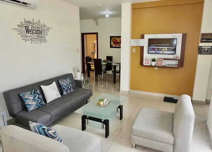 דירה Garzota Suites Airport Balcony ממוקמת במחוז Garzota של העיר גוויאקיל וכוללת פטיו. דירה זו כוללת מטבח מאובזר המצויד עם מיקרוגל, מקרר וכלי מטבח.